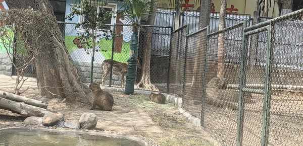 赭山公園新引進(jìn)的是三只拉皮巴拉,它們悠然自得的模樣已成為赭山動(dòng)物園的新晉網(wǎng)紅。這些體型如中型犬的"巨型倉(cāng)鼠"頂著招牌的方腦袋,時(shí)而組團(tuán)泡溫泉,時(shí)而嚼著特供的蘆葦下午茶,慵懶愜意的模樣萌化人心。卡皮巴拉家庭不但擁有獨(dú)棟籠舍、游泳池、各類食物蔬菜水果也是吃到飛起。為了讓卡皮巴拉更好的適應(yīng)新生活,動(dòng)物園還特別為卡皮巴拉打造水面陸地兩個(gè)活動(dòng)區(qū),水面活動(dòng)區(qū)是一個(gè)游泳池,滿足它們愛(ài)洗澡的習(xí)慣;陸地活動(dòng)區(qū)進(jìn)行了模仿南美雨林豐容,栽種了兩棵熱帶棕櫚樹(shù),搭建了適于它們游玩的木橋。歡迎廣大游客來(lái)與它們親密互動(dòng)!