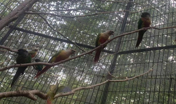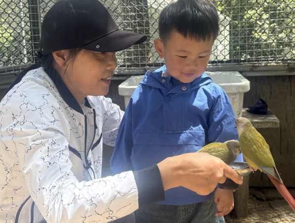 在全新開(kāi)放的鸚鵡互動(dòng)樂(lè)園,20只綠頰錐尾鸚鵡化身靈動(dòng)的彩虹使者。這些被稱為"迷你金剛鸚鵡"的小家伙身披翡翠綠羽衣,尾羽點(diǎn)綴著緋紅與鈷藍(lán),清脆的鳴叫聲宛如自然交響樂(lè)。游客購(gòu)買園區(qū)售賣的專用飼料,就可以體驗(yàn)被鸚鵡"空降"手掌、肩頭的驚喜時(shí)刻。為確?;?dòng)安全,園方設(shè)置了每日2場(chǎng)的限時(shí)喂食活動(dòng),分別是早上的10點(diǎn)至12點(diǎn),下午的3點(diǎn)到4點(diǎn),并由專業(yè)飼養(yǎng)員全程指導(dǎo)互動(dòng)技巧。"我們希望孩子們?cè)跉g笑中理解:每一個(gè)生命都值得被溫柔對(duì)待。"動(dòng)物保育員如是說(shuō)。