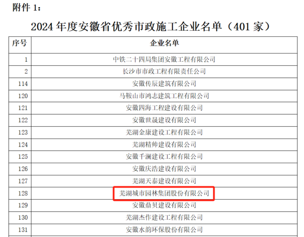 近日,在安徽省住房和城鄉(xiāng)建設(shè)廳和安徽省市政工程協(xié)會(huì)最新公布的年度評(píng)優(yōu)結(jié)果中,蕪湖園林集團(tuán)憑借卓越的綜合實(shí)力和突出的行業(yè)貢獻(xiàn),同時(shí)榮獲“2023年度安徽省優(yōu)秀建筑業(yè)企業(yè)“和“2024年度安徽省優(yōu)秀市政企業(yè)”兩項(xiàng)省級(jí)榮譽(yù)稱號(hào),此次雙項(xiàng)榮譽(yù)的取得,是對(duì)園林集團(tuán)在工程質(zhì)量、安全生產(chǎn)、科技創(chuàng)新、社會(huì)責(zé)任等方面全面發(fā)展的權(quán)威認(rèn)可,進(jìn)一步鞏固了集團(tuán)在省內(nèi)行業(yè)的領(lǐng)先地位。
