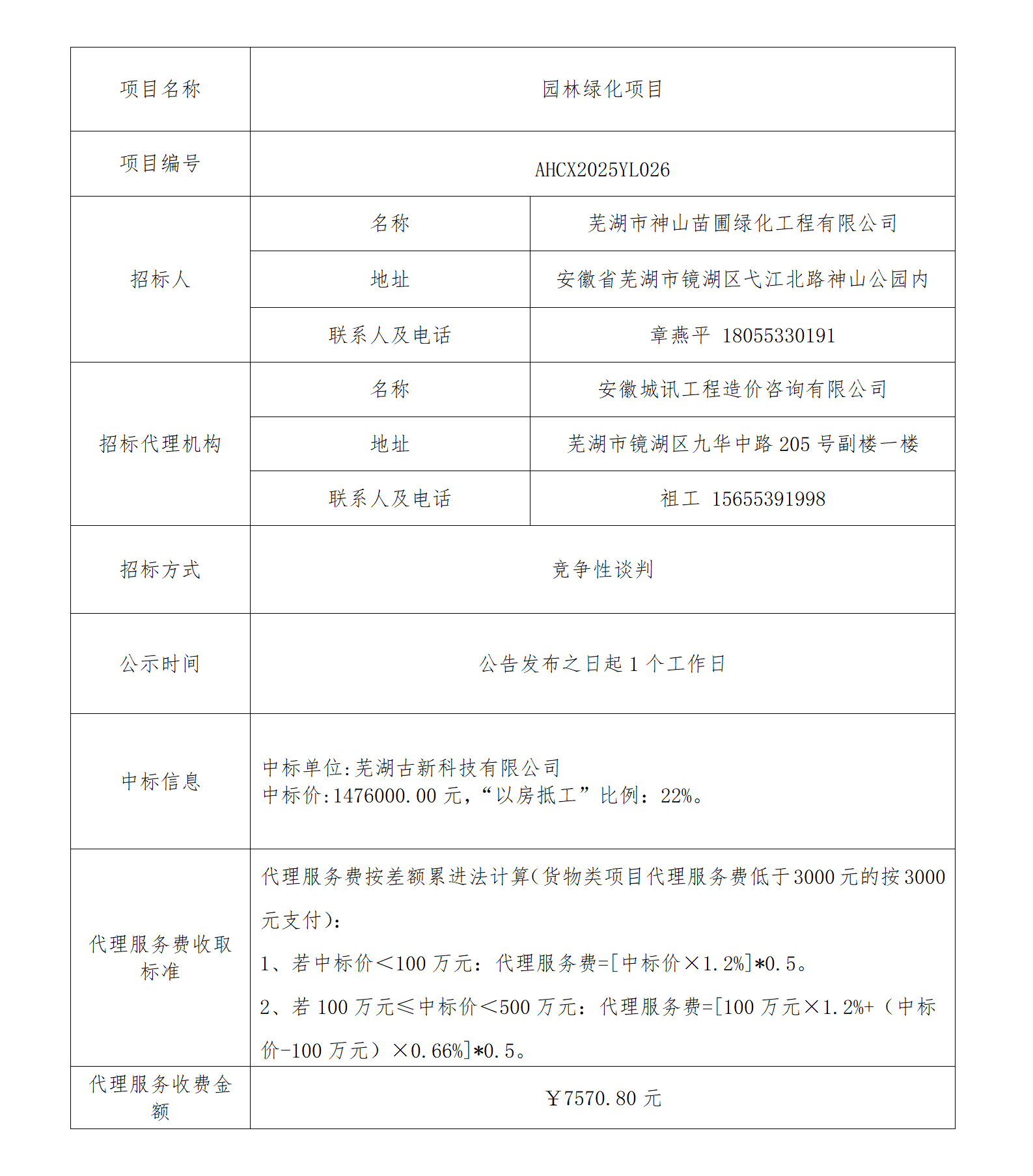 • 園林綠化項目成交結果公告