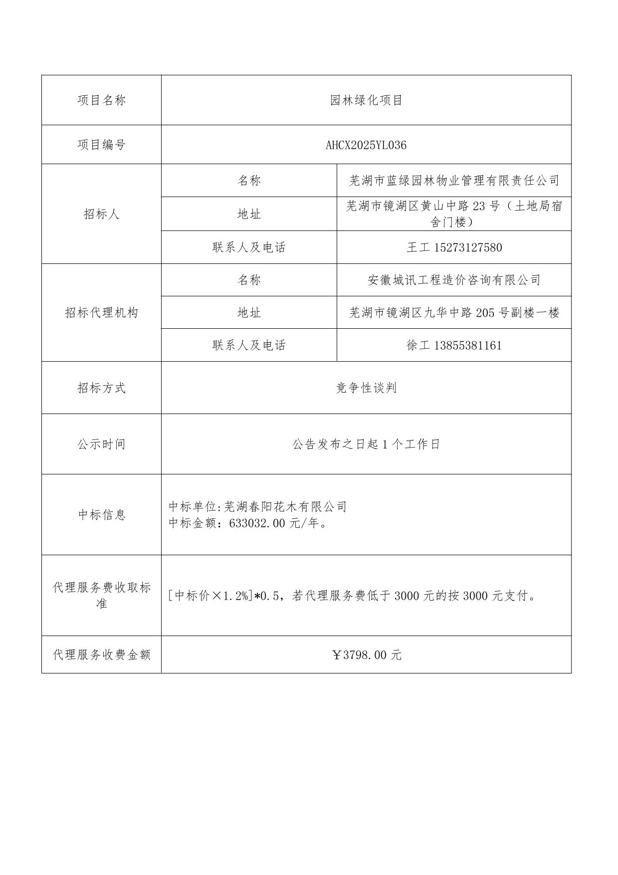 • 園林綠化項(xiàng)目成交結(jié)果公示