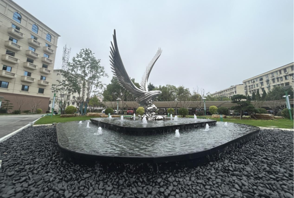 如今,園區(qū)內(nèi)景觀風(fēng)格煥然一新,水聲潺潺,綠樹成蔭,環(huán)境宜人。門口展翅的雄鷹雕塑與流水景觀、綠化植物相得益彰,共同構(gòu)成了一幅美麗的生態(tài)畫卷。該項(xiàng)目順利完工,不僅成為蕪湖城市更新的生動縮影,更以生態(tài)之美、人文之韻,為城市高質(zhì)量發(fā)展注入了新的活力與內(nèi)涵。