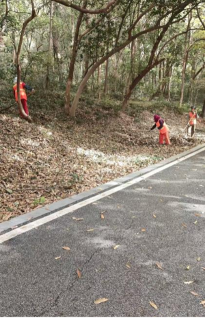 行動期間,工作人員針對公園主干道、登山步道及林木密集區(qū)域,利用耙子、吹風機、掃帚等工具,對堆積的枯枝落葉、雜草雜灌等易燃物進行集中清理和轉(zhuǎn)運,顯著降低林下可燃物負荷,從源頭上減少火災發(fā)生風險。