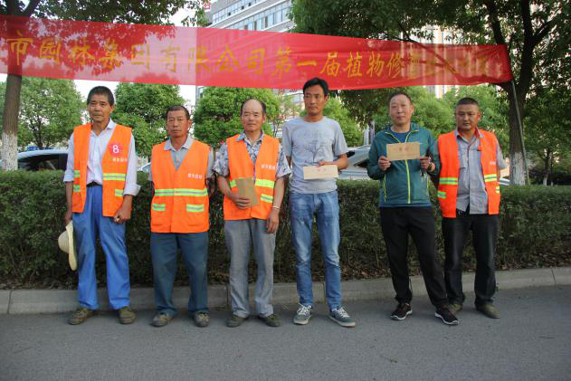 本次修剪比賽評(píng)委由園林集團(tuán)5位綠化專業(yè)人員組成,他們?yōu)閰①愡x手講解了木槿、球類植物、綠籬的修剪技巧和要領(lǐng),指出選手在修剪中存在的問(wèn)題和改進(jìn)方法,并依次評(píng)分,參賽選手紛紛表示受益匪淺。經(jīng)過(guò)激烈角逐,評(píng)選出三個(gè)類別的一等獎(jiǎng)各1名、二等獎(jiǎng)各2名、三等獎(jiǎng)各4名,以資鼓勵(lì)。