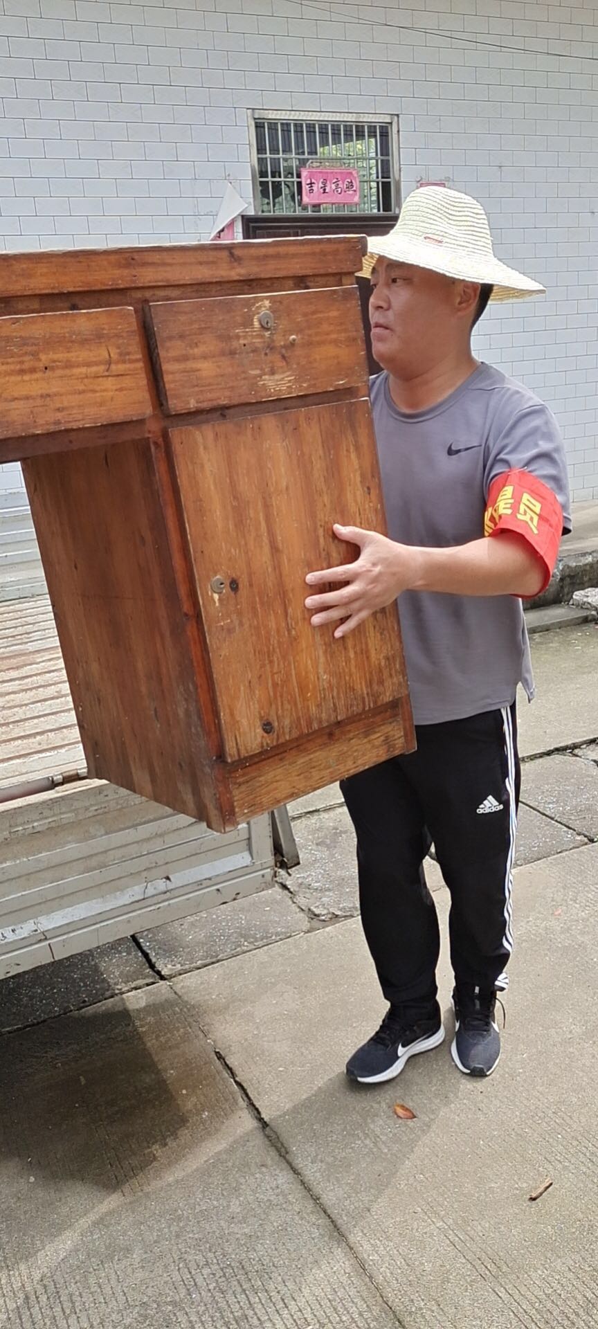 7月29日下午,在完成巡堤查險(xiǎn)任務(wù)后,接到當(dāng)?shù)卣笾?,需要人員幫助受困群眾搬運(yùn)家具,撤離隱患地區(qū),隊(duì)員李勇不顧疲勞、主動(dòng)請(qǐng)纓,妥善完成工作任務(wù)。