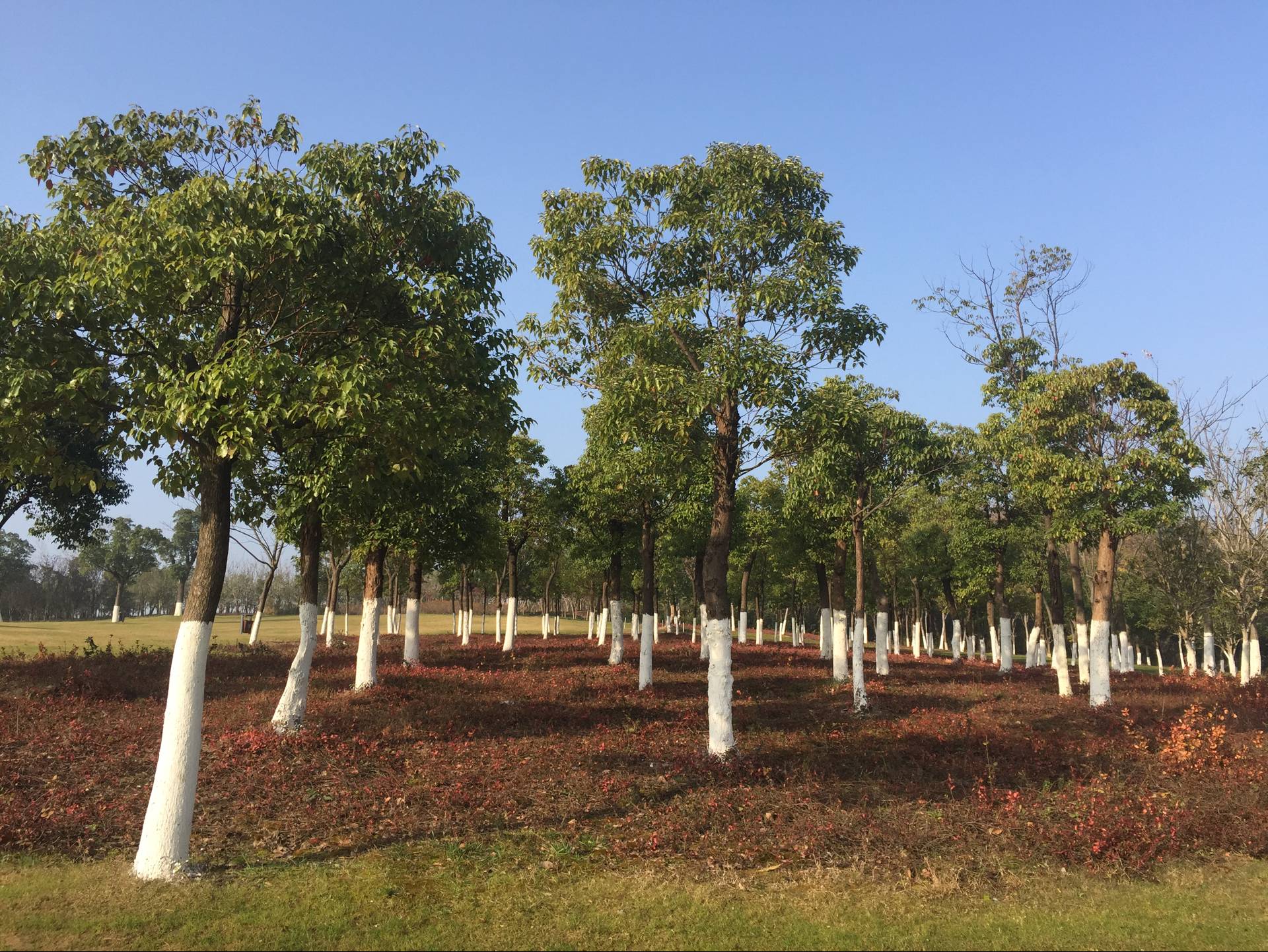 每年秋冬季交際時節(jié),細心的游客、市民們都能發(fā)現,公園、道路行道樹、景觀樹木在從地面向樹干上部1.2米都會被涂成白色。那這是為什么呢?