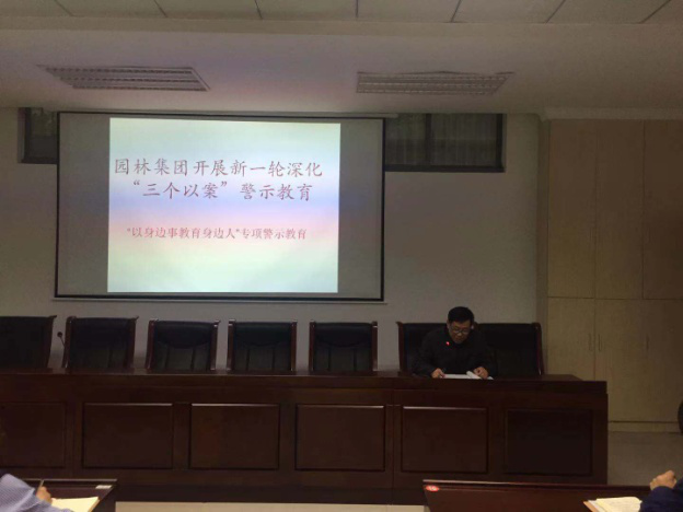 根據(jù)市紀(jì)委監(jiān)委推進(jìn)新一輪深化“三個(gè)以案”警示教育工作部署,扎實(shí)推進(jìn)落實(shí)十屆市委第十一輪巡察“回頭看”反饋問題整改,結(jié)合園林集團(tuán)關(guān)于開展新一輪深化“三個(gè)以案”警示教育實(shí)施方案的總體要求,使廣大黨員干部增強(qiáng)“四個(gè)意識(shí)”、堅(jiān)定”四個(gè)自信”、做到“兩個(gè)維護(hù)”。4月25日下午園林集團(tuán)開展“以身邊事教育身邊人”專題警示教育活動(dòng),集團(tuán)領(lǐng)導(dǎo)班子成員、全體中層以上干部及各黨支部委員參加會(huì)議。