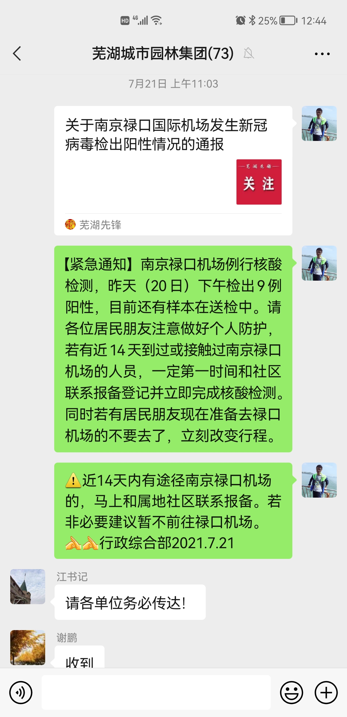 7月20日,南京祿口機場例行核酸檢測,檢出9例陽性。情況發(fā)生后,園林集團黨委高度重視。結(jié)合市新冠疫情防控暨推進“六穩(wěn)”工作指揮部(2021第2號)文件精神,集團公司主要領(lǐng)導(dǎo)第一時間作出批示,立即啟動《園林集團新冠從嚴快速做好各項防控措施》。