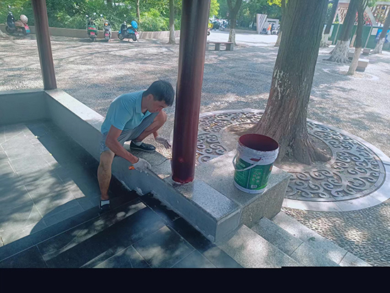 二是對(duì)園容綠化樹(shù)木進(jìn)行修剪整形、補(bǔ)植補(bǔ)栽;清掃保潔全園主干道、綠地、池塘水域;對(duì)廣場(chǎng)座椅、燈桿、標(biāo)志牌、健身器材、衛(wèi)生間內(nèi)外設(shè)施等加大保潔力度;加強(qiáng)基礎(chǔ)設(shè)施維護(hù),維修更換廣場(chǎng)座椅、廁所硬件設(shè)備等。積極營(yíng)造干凈、整潔、靚麗、優(yōu)美的公園環(huán)境,保證文明創(chuàng)建迎檢期間公園最佳景觀效果。
