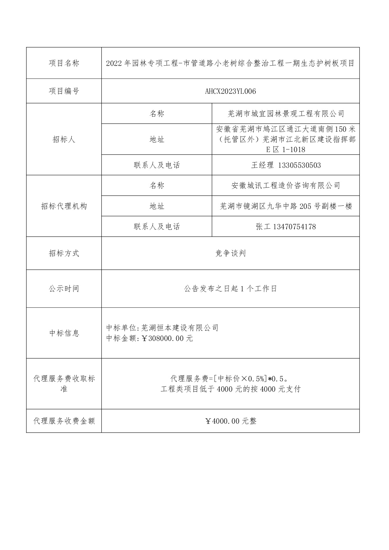 2022年園林專(zhuān)項(xiàng)工程-市管道路小老樹(shù)綜合整治工程一期生態(tài)護(hù)樹(shù)板項(xiàng)目中標(biāo)...
