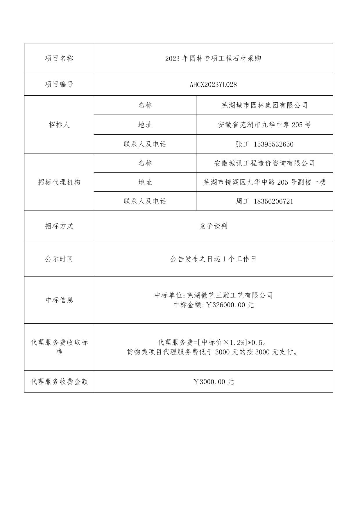2023年園林專項工程-石材采購中標結(jié)果公示