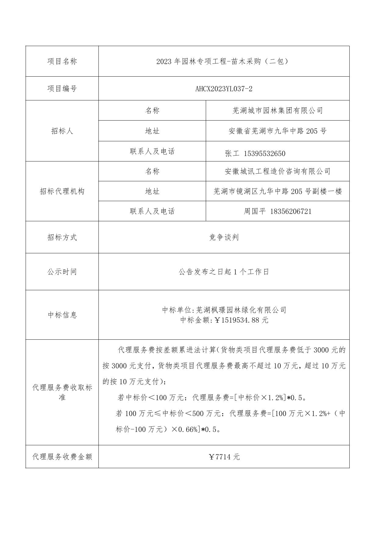 2023年園林專(zhuān)項(xiàng)工程-苗木采購(gòu)(二包)中標(biāo)結(jié)果公示