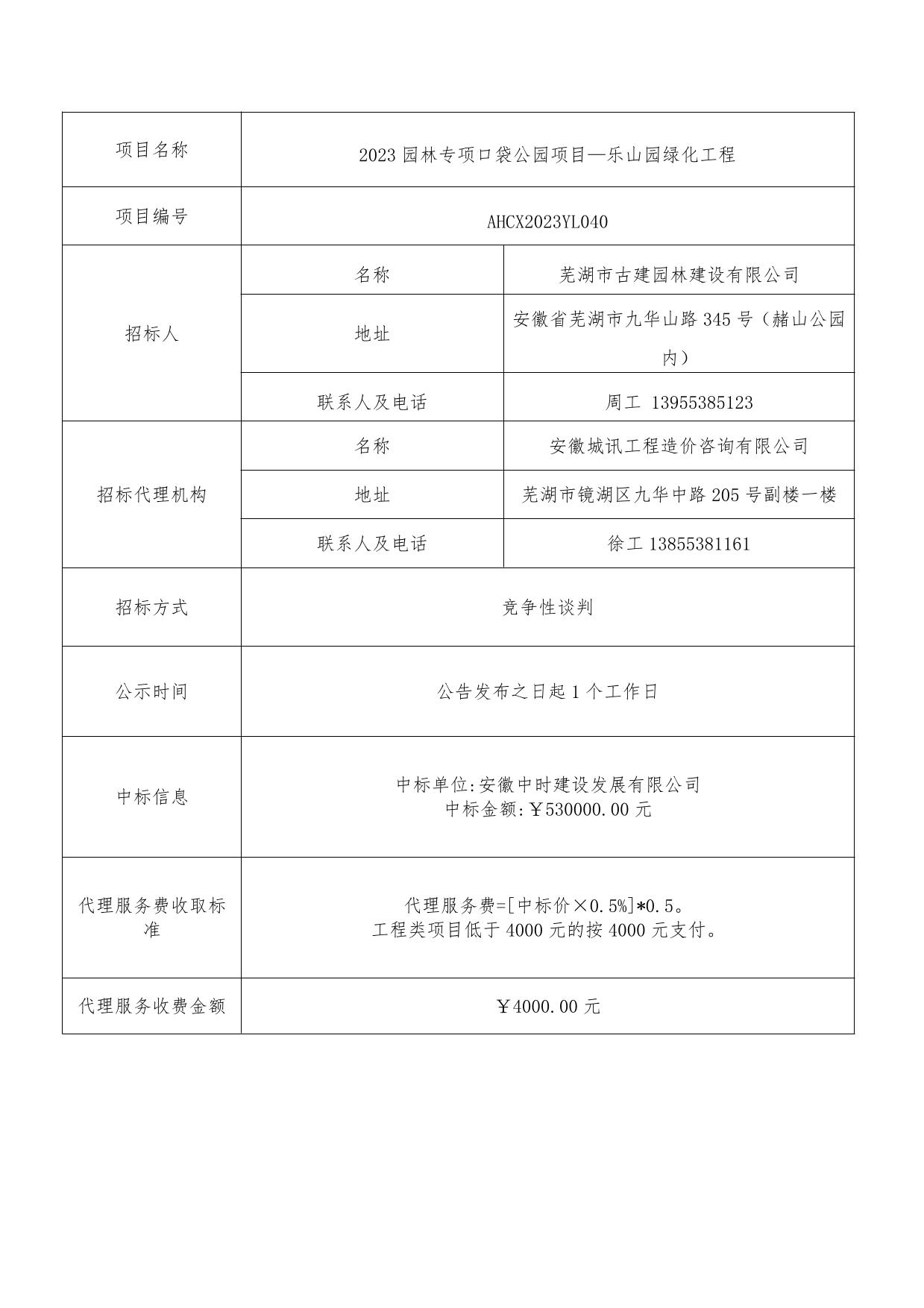 2023園林專(zhuān)項(xiàng)口袋公園項(xiàng)目—樂(lè)山園綠化工程中標(biāo)結(jié)果公示