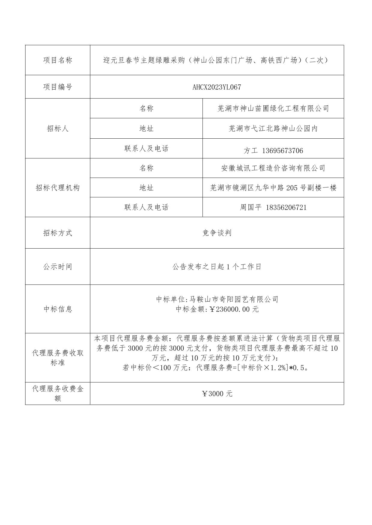 迎元旦春節(jié)主題綠雕采購(神山公園東門廣場、高鐵西廣場)(二次)成交結(jié)果公...