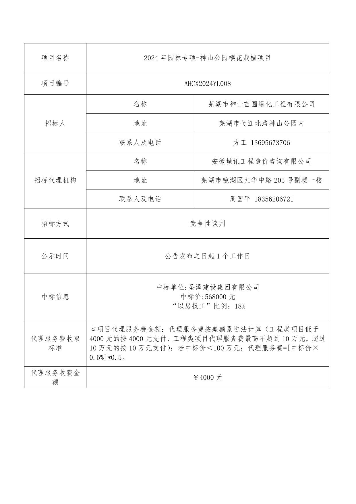2024年園林專項-神山公園櫻花栽植項目成交結(jié)果公告