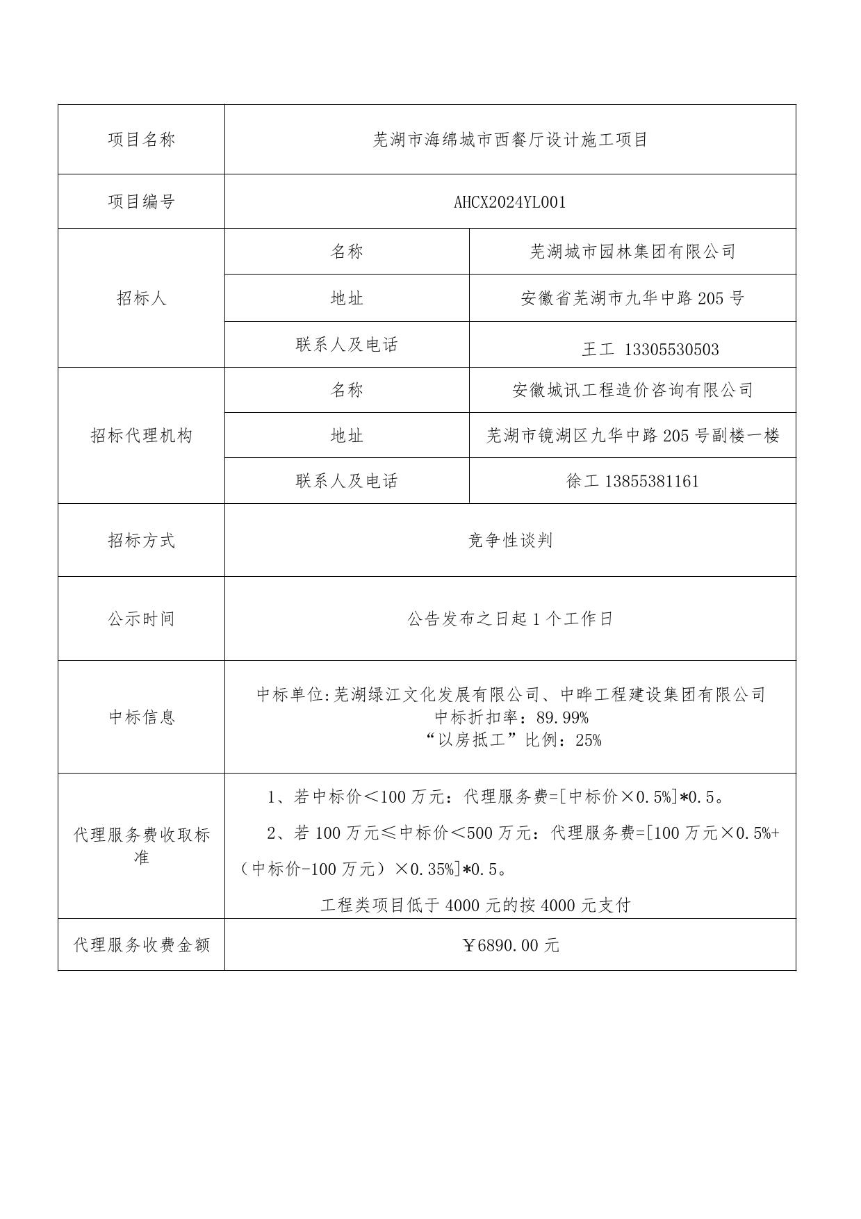 蕪湖市海綿城市西餐廳設計施工項目中標結(jié)果公示