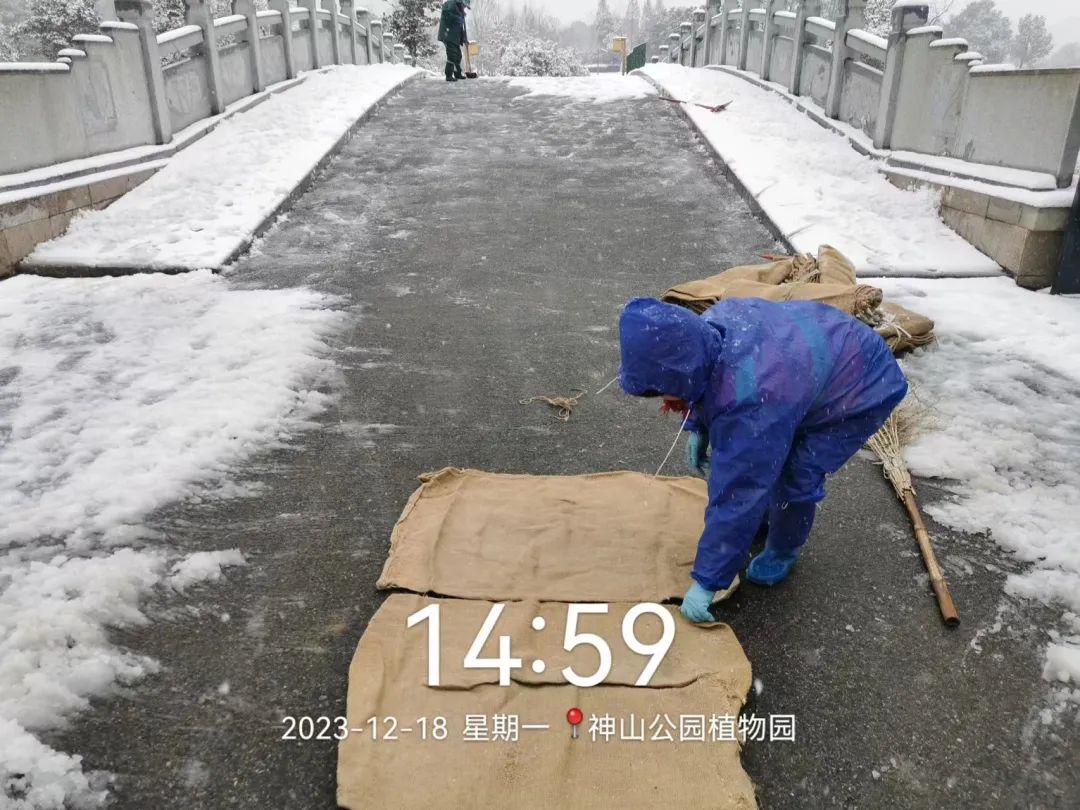 受強(qiáng)冷空氣影響,一場大雪飄然而至,厚厚的積雪給道路交通、市民生活帶來諸多不便。為方便市民安全游園,神山公司迅速行動,及時組織領(lǐng)導(dǎo)干部、黨員、職工以及養(yǎng)護(hù)隊(duì)伍全面開展清雪行動,對公園的橋梁、廁所臺階進(jìn)行撒鹽、鋪麻袋;對公園水面、山林等危險區(qū)域設(shè)置警戒線,對倒伏樹木進(jìn)行扶正,防止危險的發(fā)生,為市民出行安全“保駕護(hù)航”。