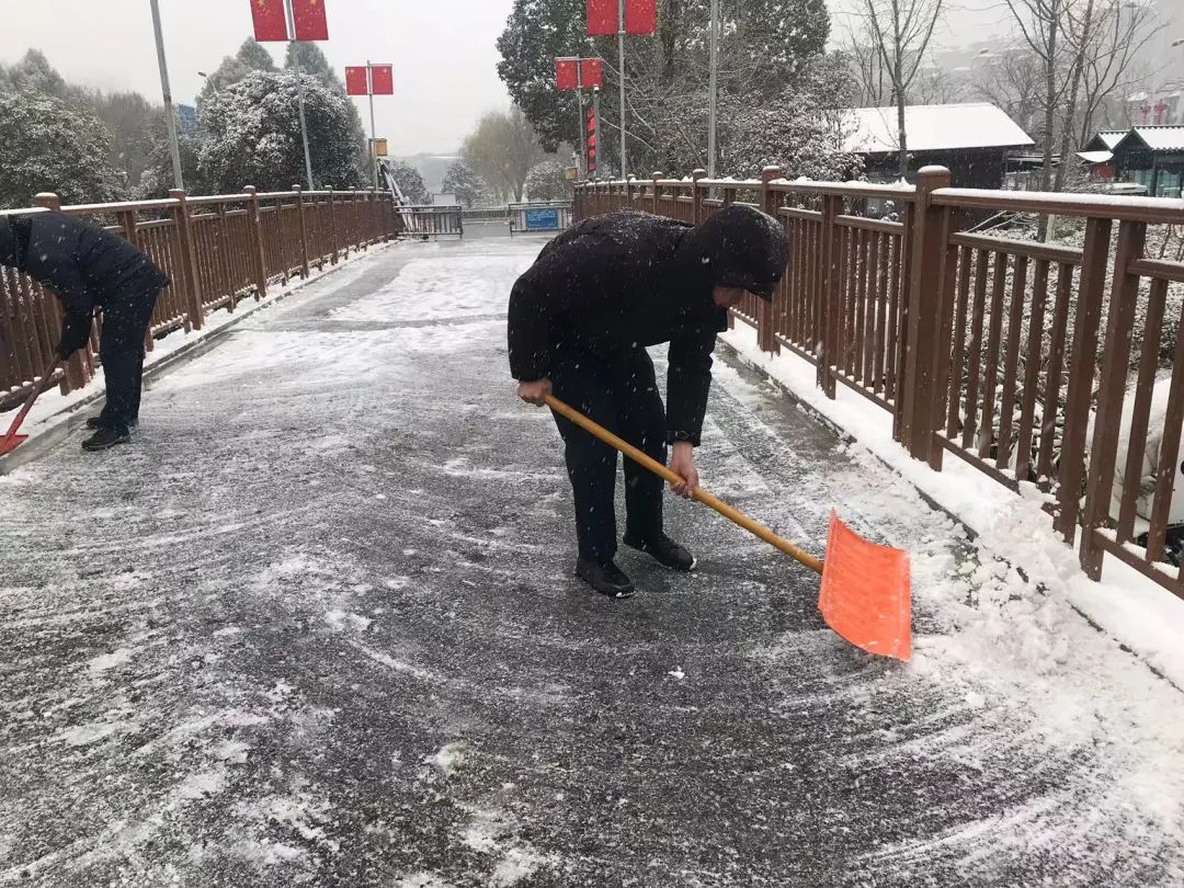 “小心慢行,注意路滑!”大家一邊掃著雪,一邊提醒著過往的行人。神山公園道路、人行通道等出行路段開辟出了一條“平安路”“溫暖路”,為市民出行消除了安全隱患。積雪的清掃為市民的出行安全提供了有力保障。
