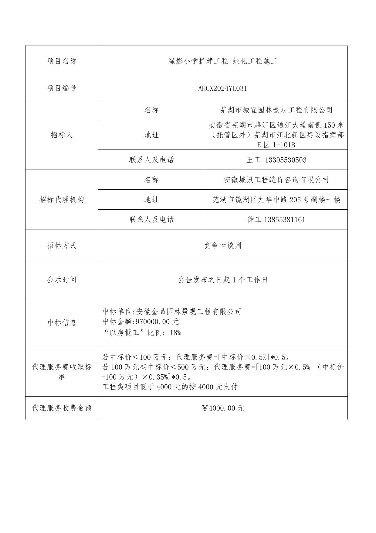 綠影小學(xué)擴(kuò)建工程-綠化工程施工成交結(jié)果公告