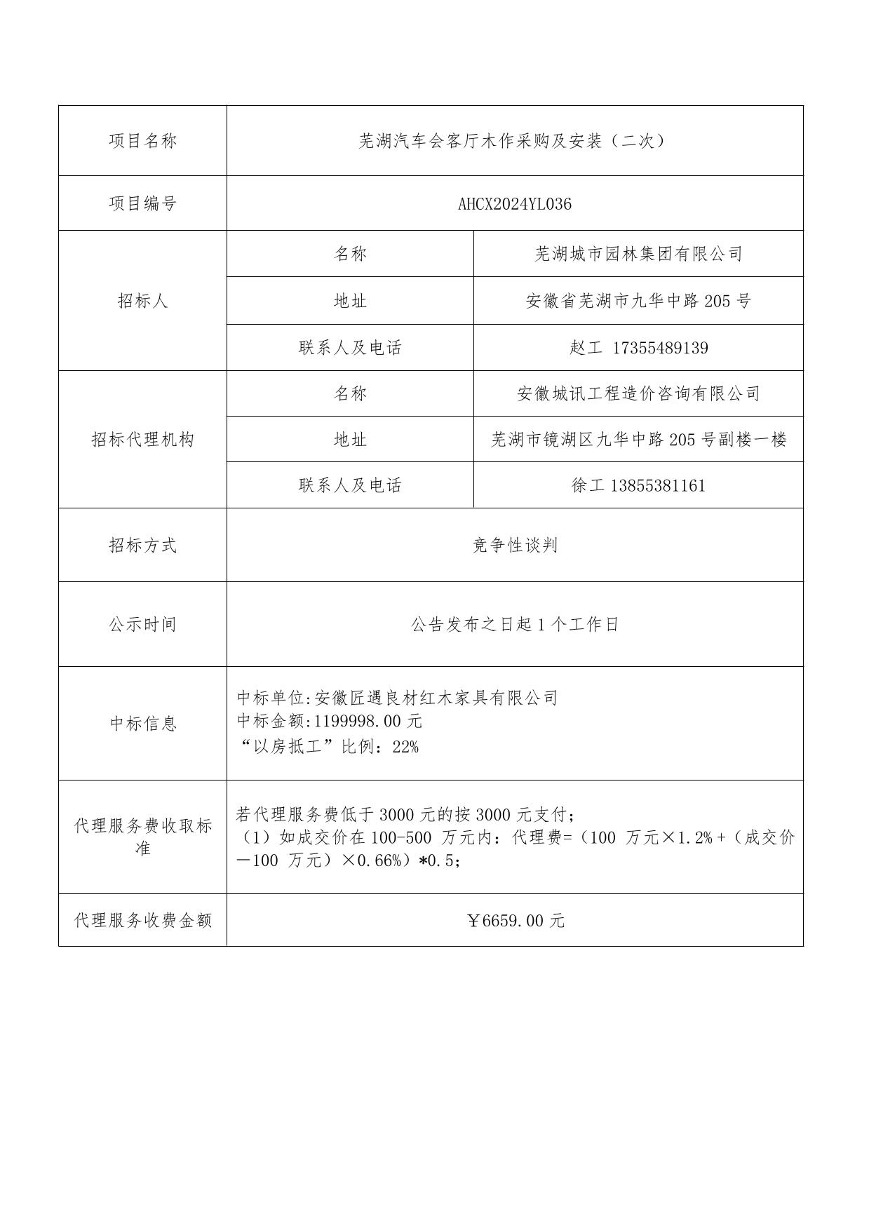 蕪湖汽車會(huì)客廳木作采購(gòu)及安裝(二次)中標(biāo)結(jié)果公告